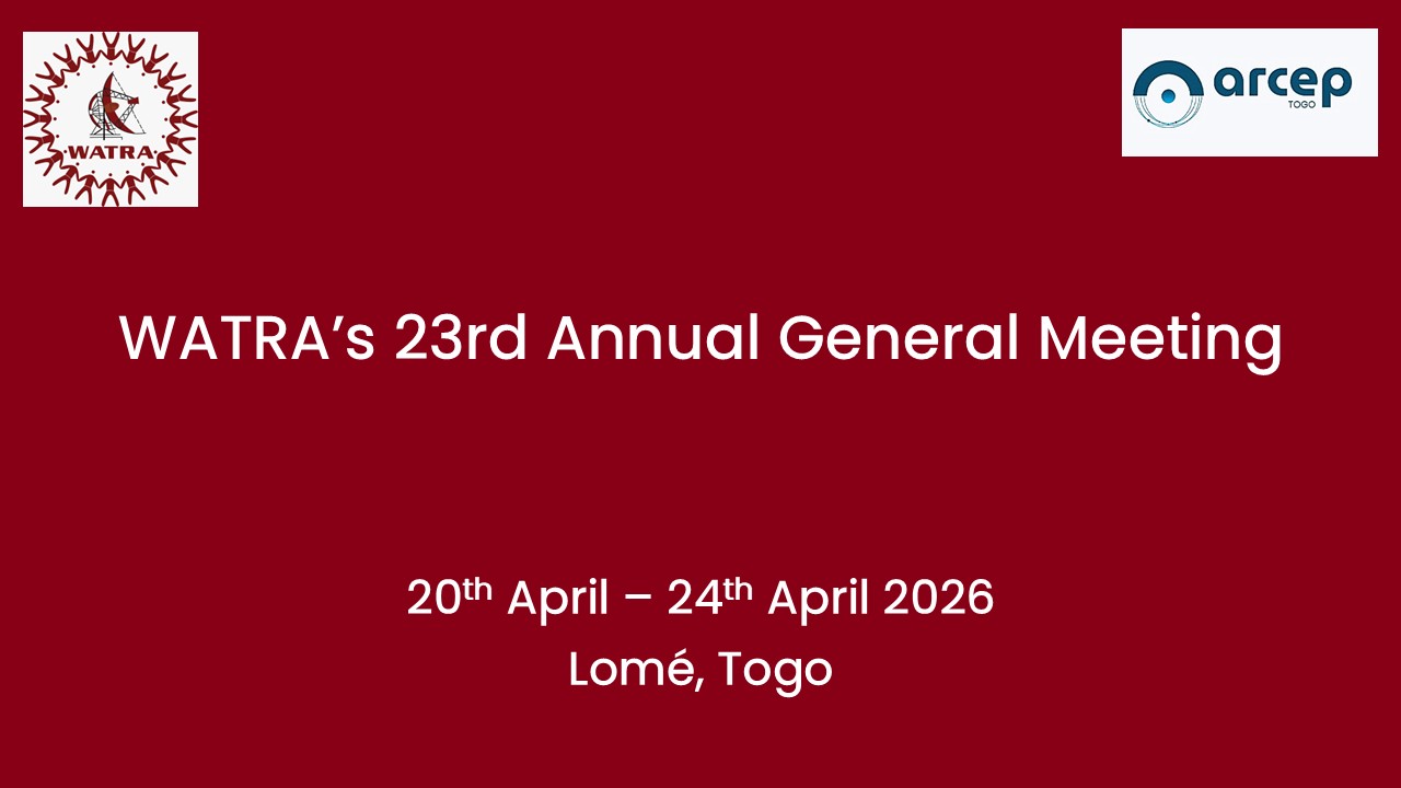 April 20 - April 24 WATRA’s 23rd Annual General Meeting Hotel 2 Février, Place de l’Indépendance, Quartier Administratif, BP: 131 Lomé Click here to register